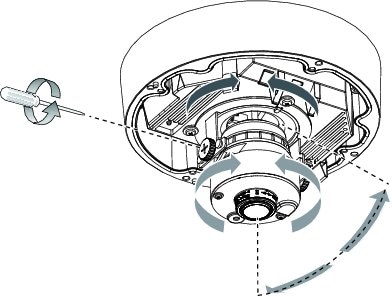 Attach the dome encompass to the IP camera base by adjustment it with the mounting holes.