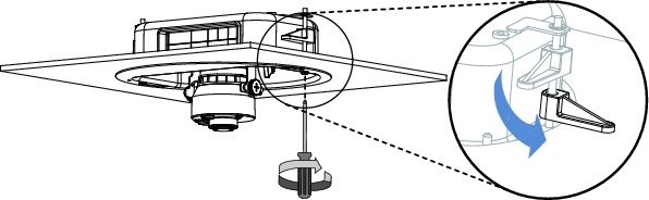 The anchor clips twist over the ceiling tile. Turn the anchor clip screws until the camera housing is snug against the ceiling tile. Do not over tighten the screws.