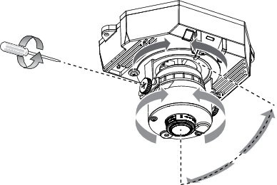 Grip the 2 tilt adjustment screws and pan the IP camera left or right.